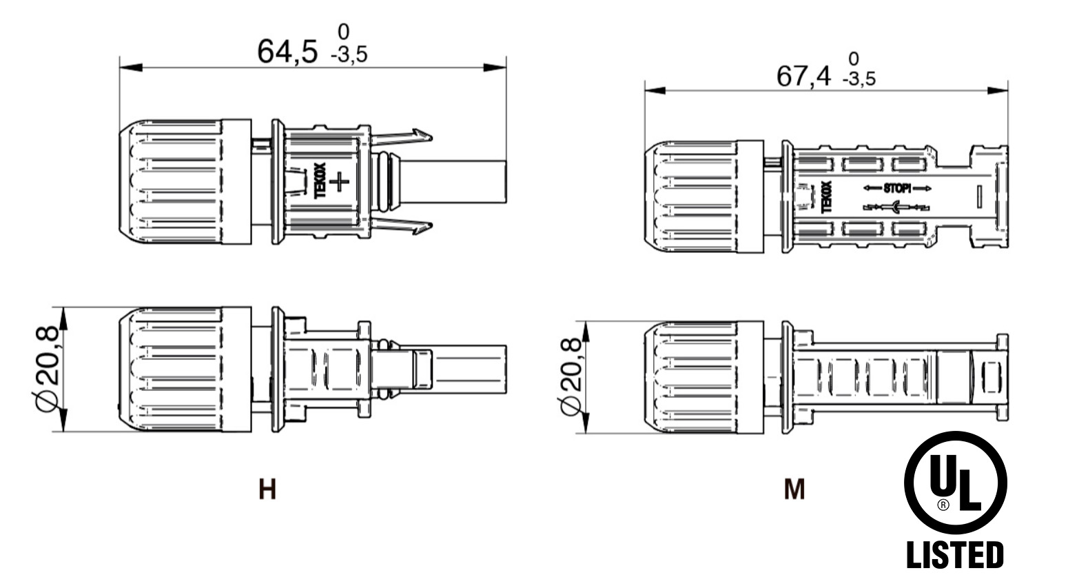 - Solid cable: 2,5 mm² / 6 mm²